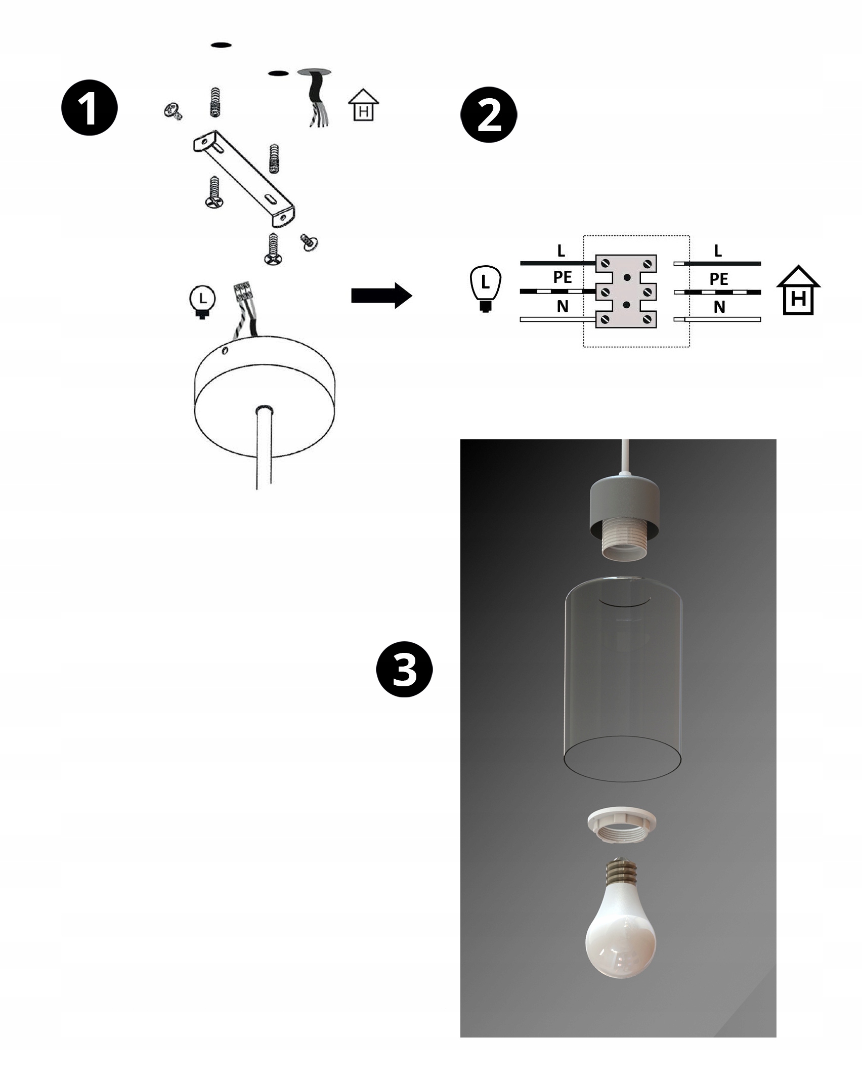 Zestaw nie zawiera żarówki, a także kołków rozporowych (należy dobrać odpowiednie do sufitu).