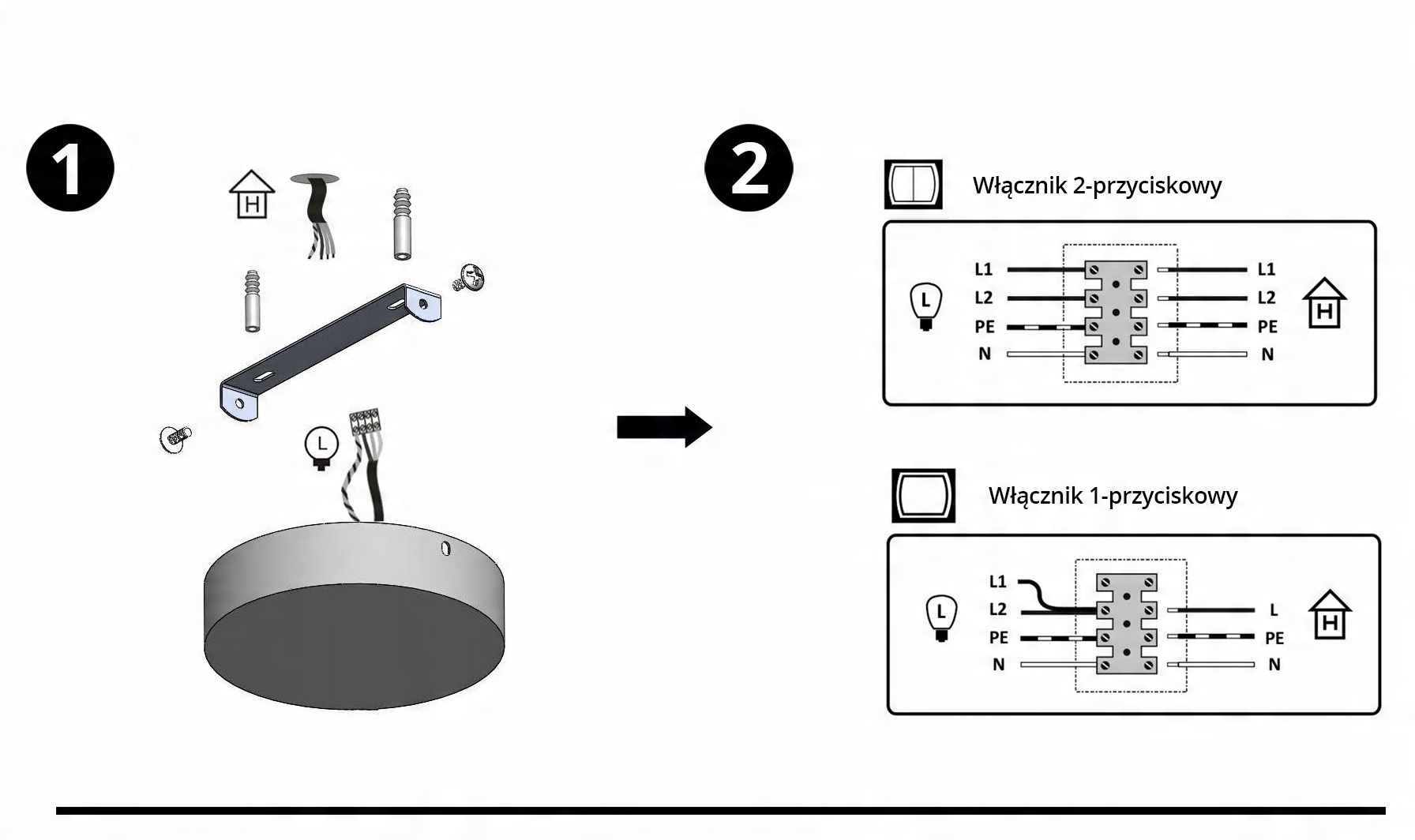 ✅ Współpracuje z włącznikiem jedno lub dwu przyciskowym,