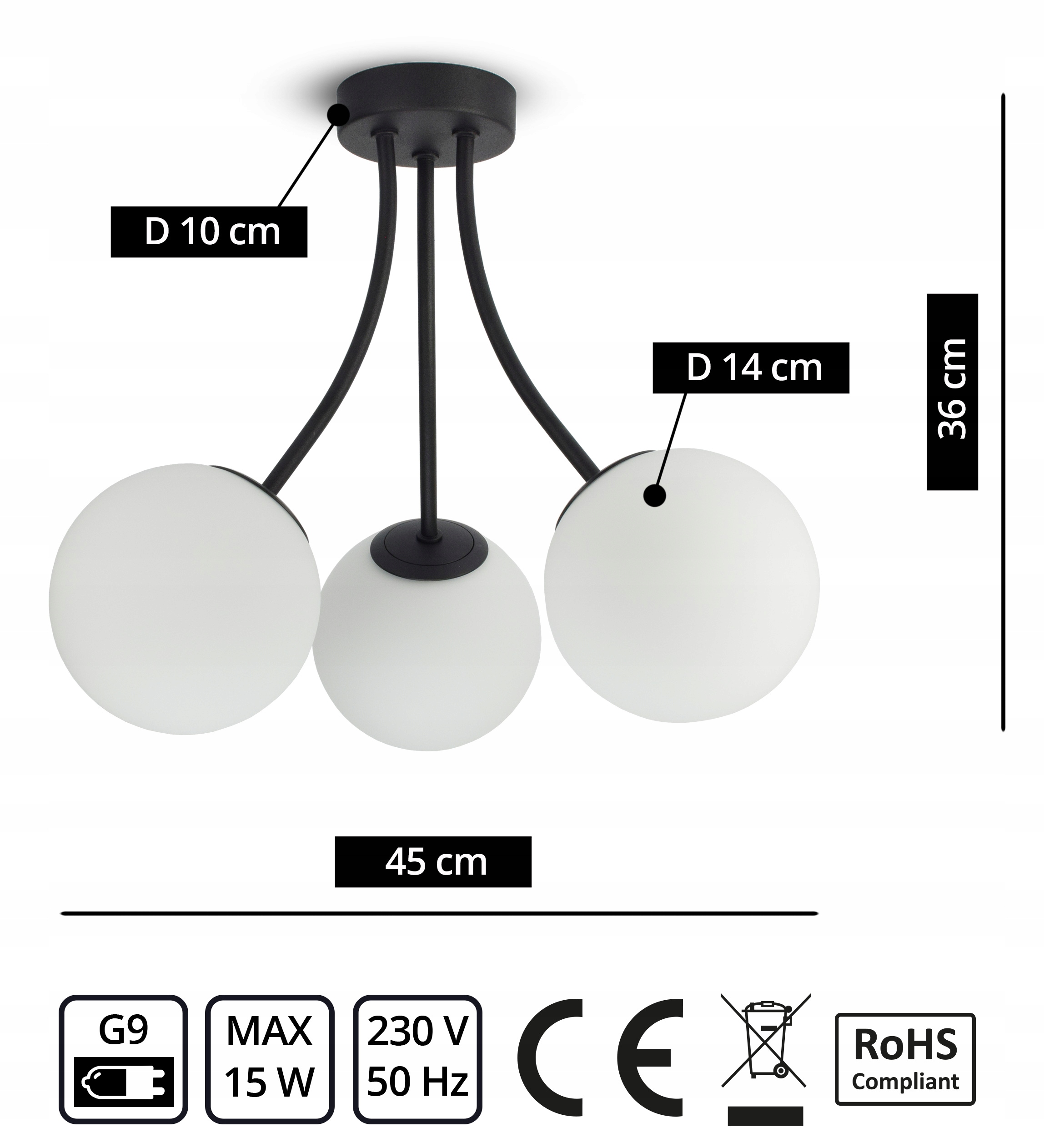 Zestaw nie zawiera żarówek, a także kołków rozporowych (należy dobrać odpowiednie do sufitu).