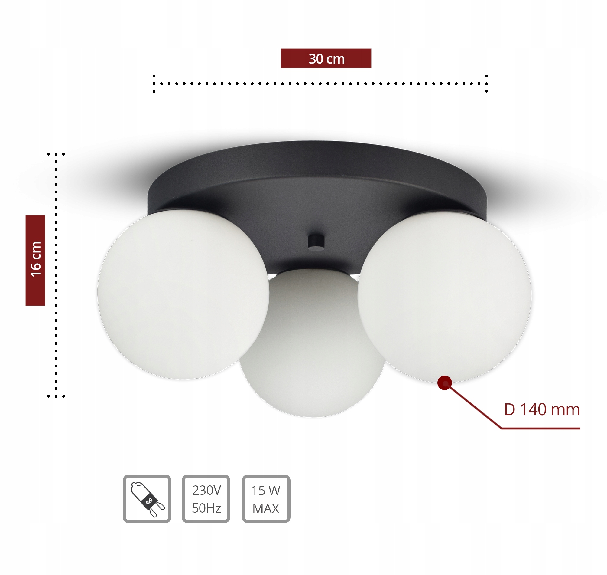 Zestaw nie zawiera żarówek, a także kołków rozporowych (należy dobrać odpowiednie do sufitu).