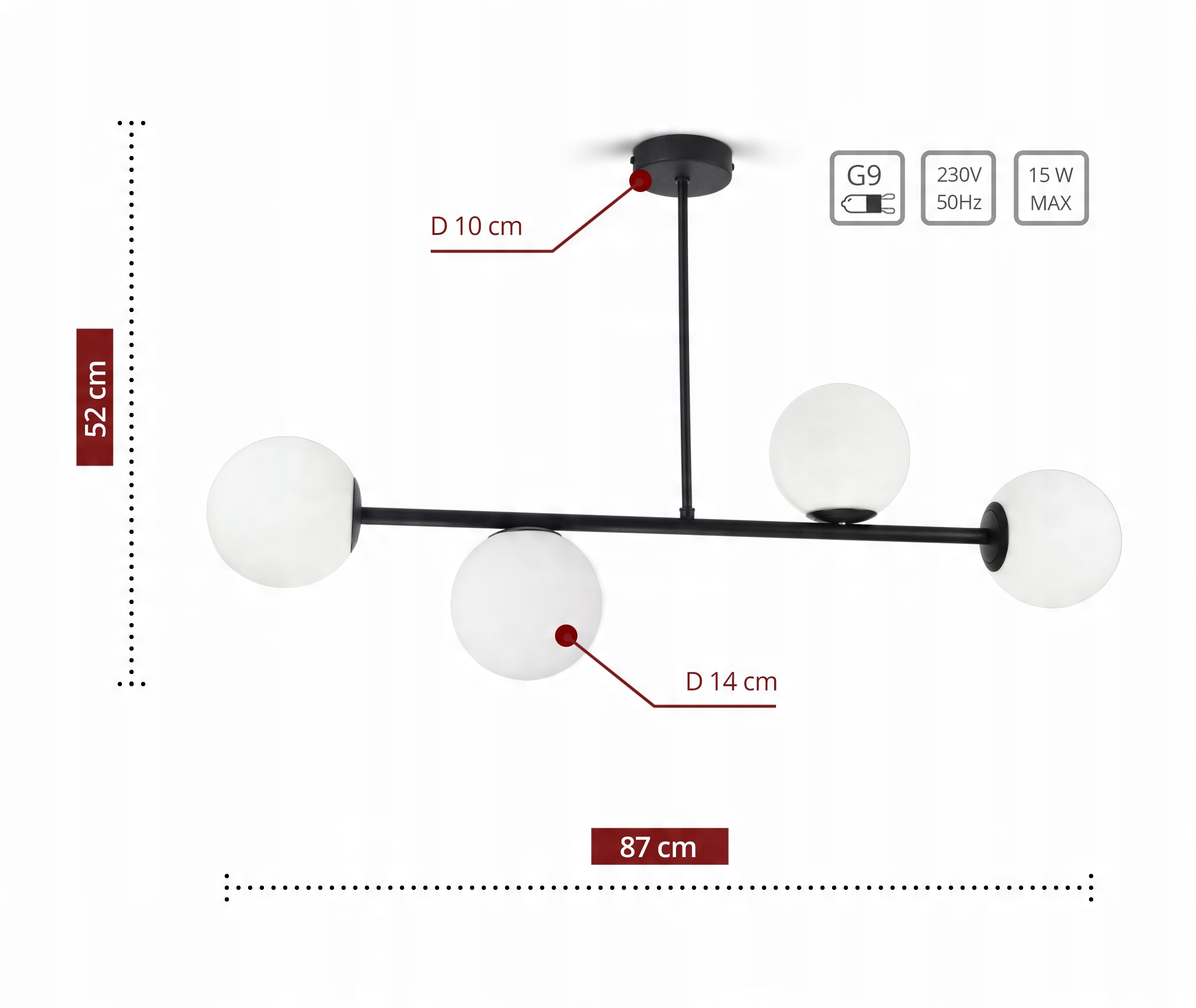 Lampa Sufitowa Żyrandol Plafon Full Globe Glass 561-J4 G9 Białe kule LED