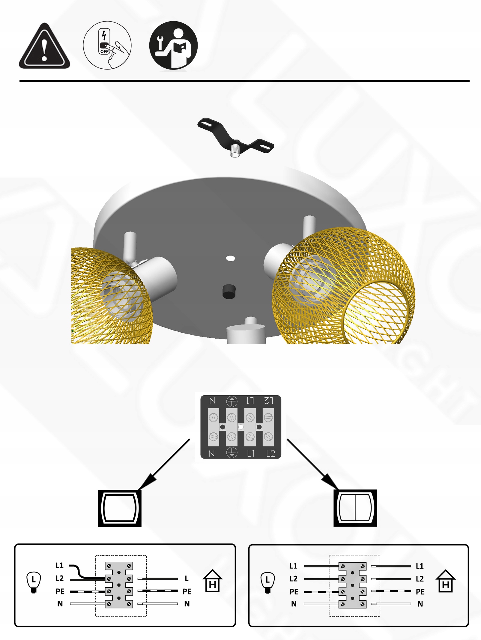 ✅ Współpracuje z włącznikiem jedno lub dwu przyciskowym, wymaga wymiany złącza na 4-torowe.