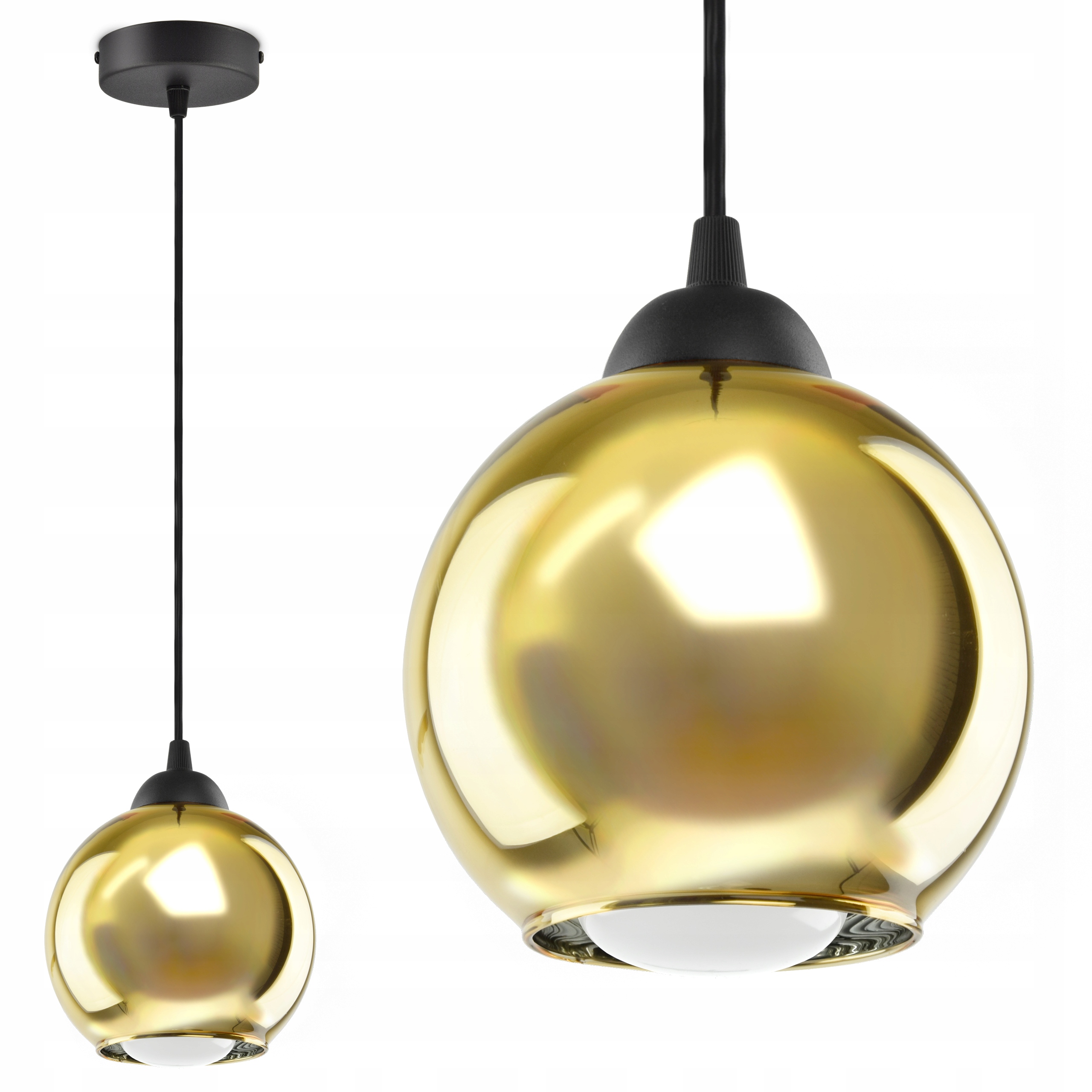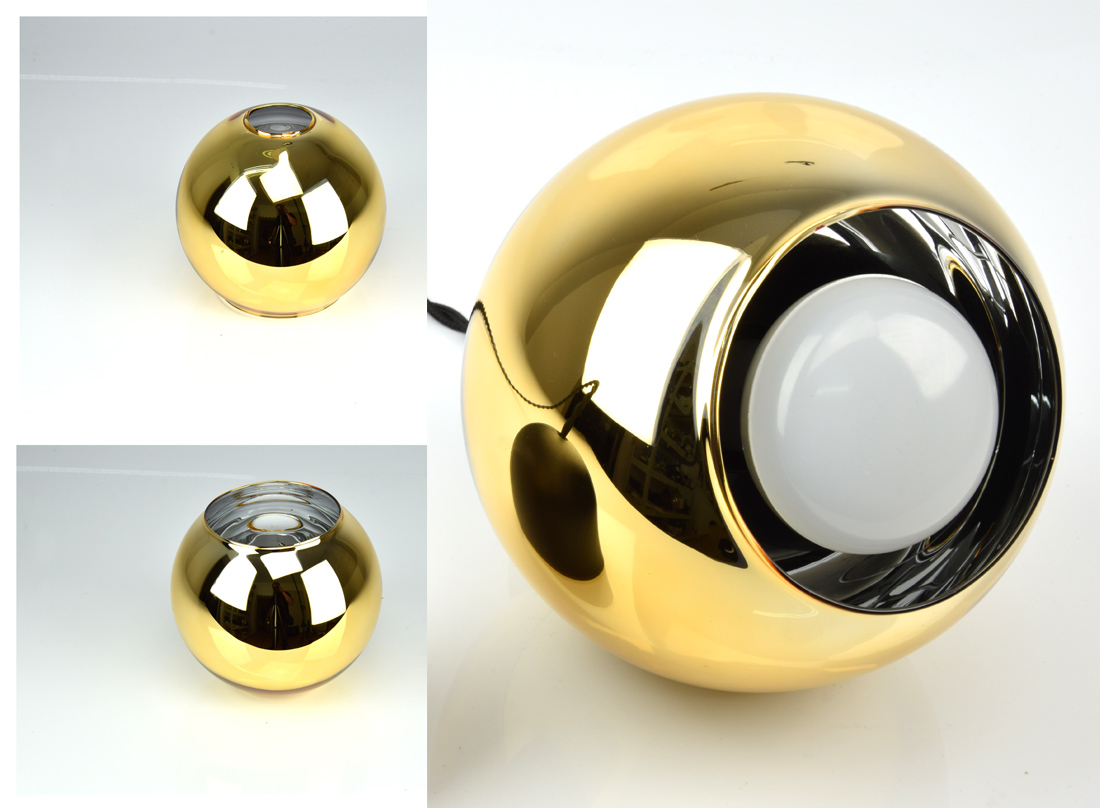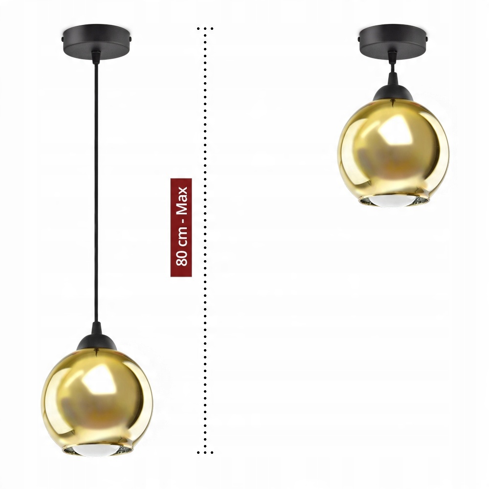 ✅ Lampa wyposażona w bardzo modny szklany klosz w kolorze złotym, błyszczącym