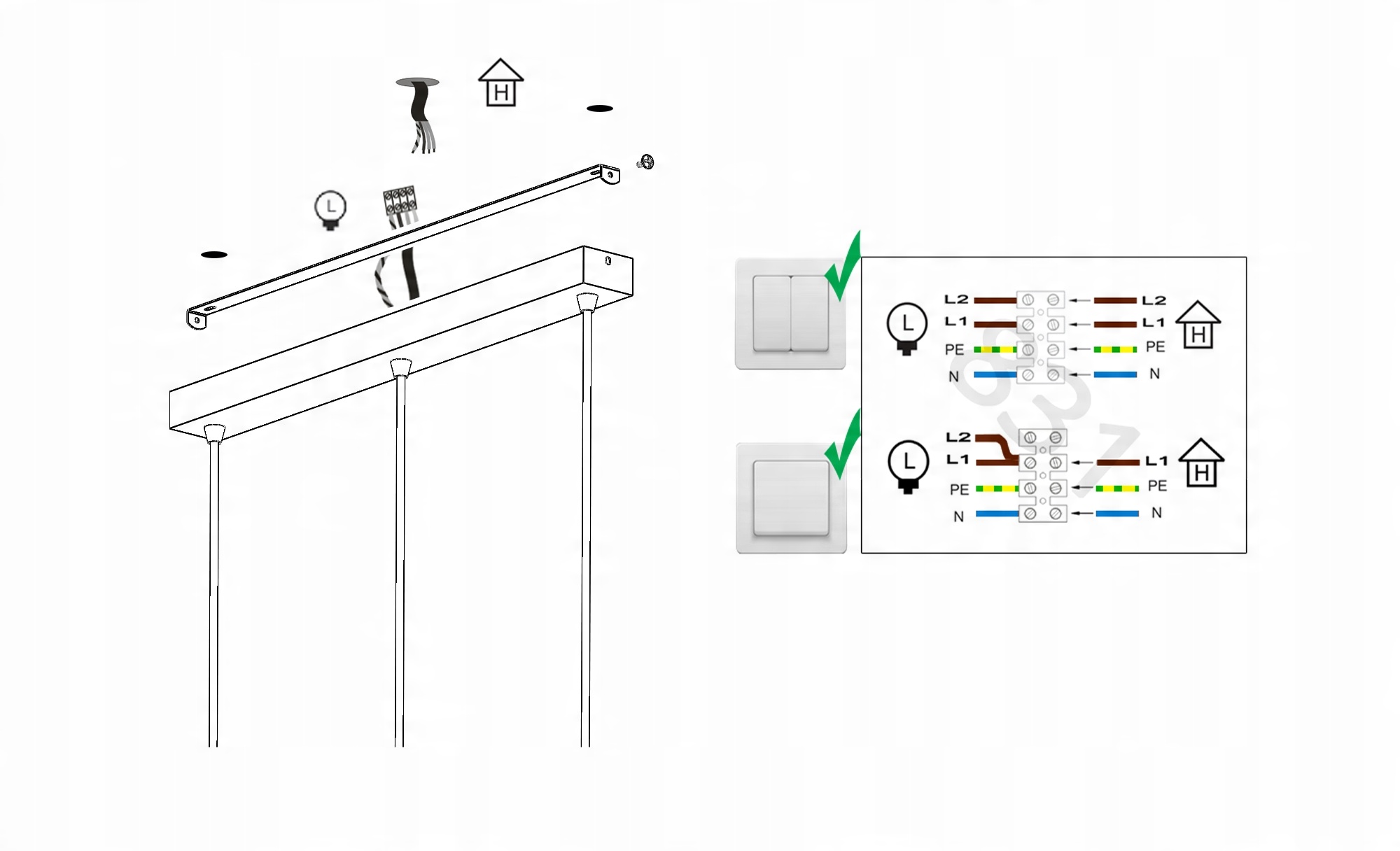 Zestaw nie zawiera żarówek ani kołków rozporowych (należy dobrać odpowiednie do rodzaju podłoża sufitu: cegła, płyta G-K...)