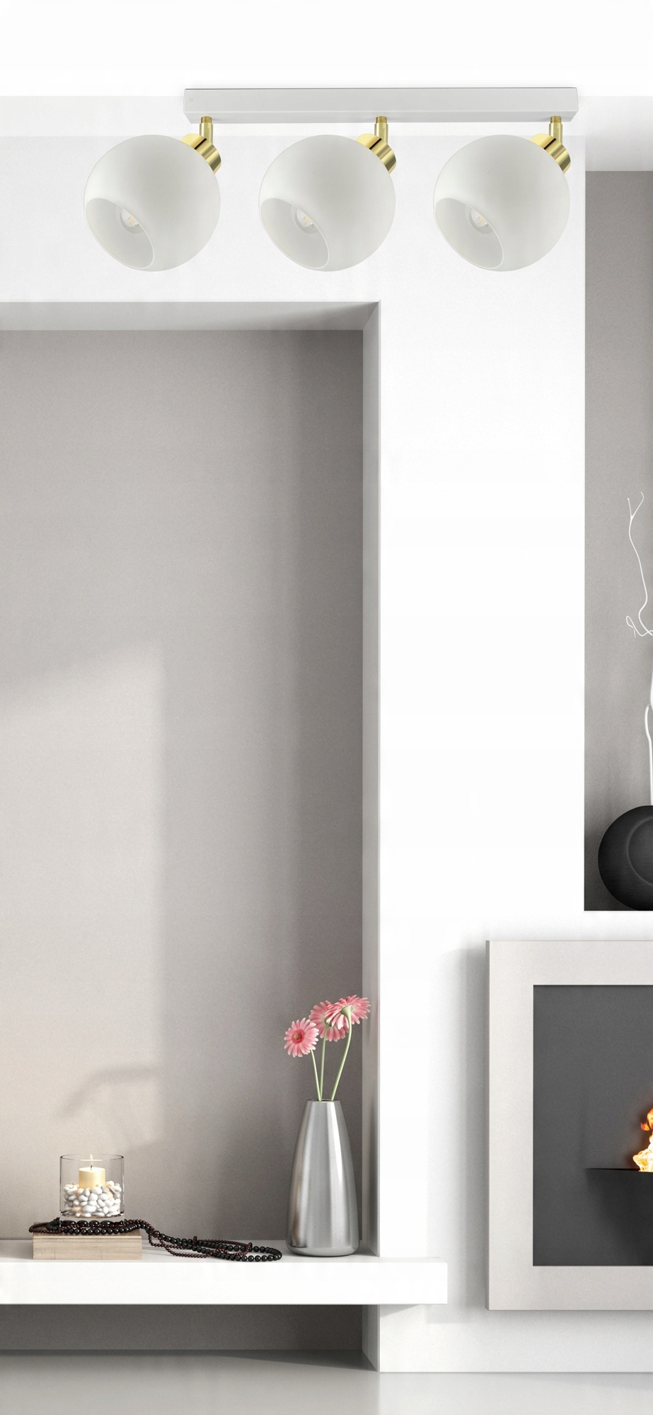 ✅ Lampa wyposażona w szklane klosze w kształcie otwartej kuli.