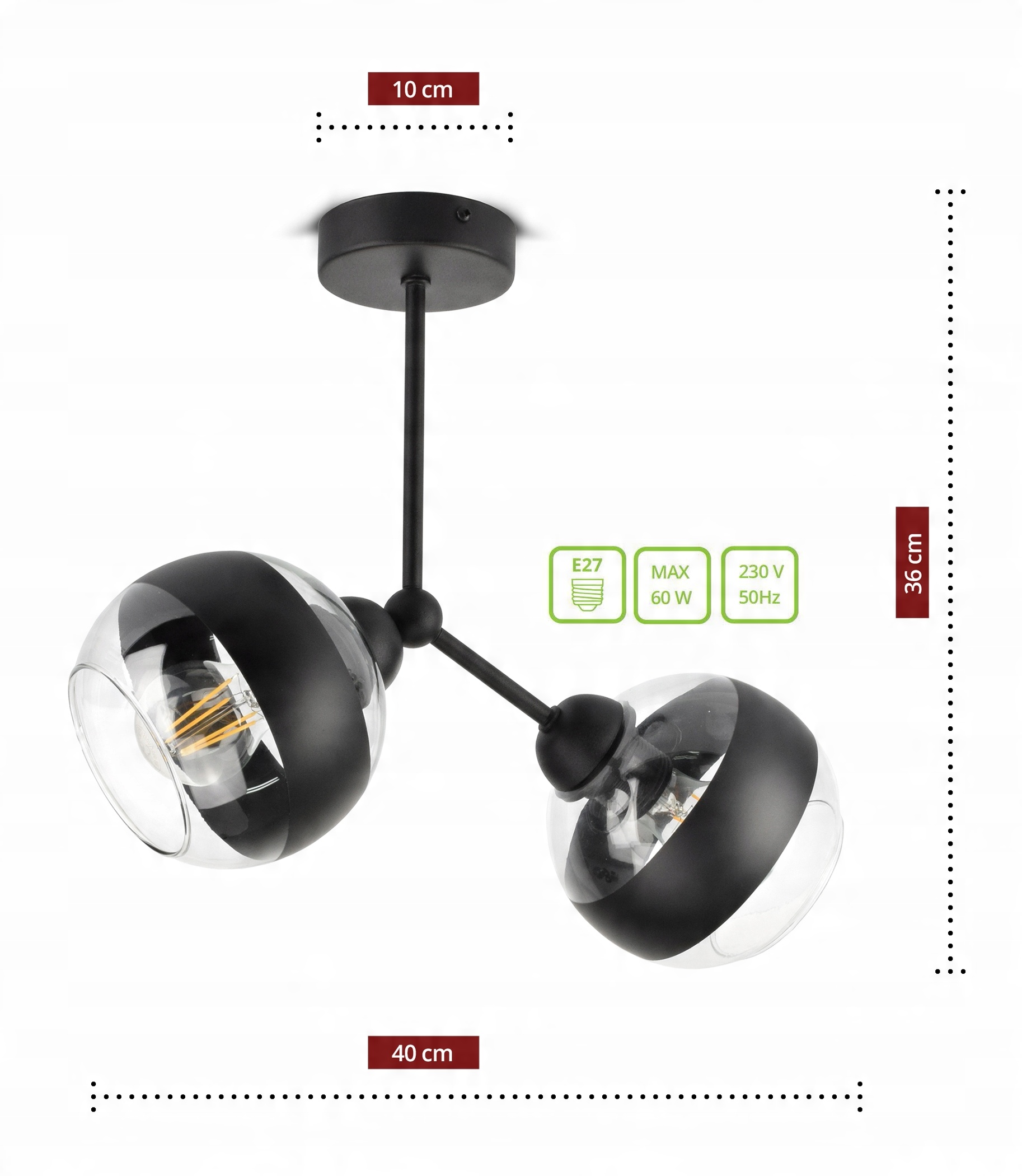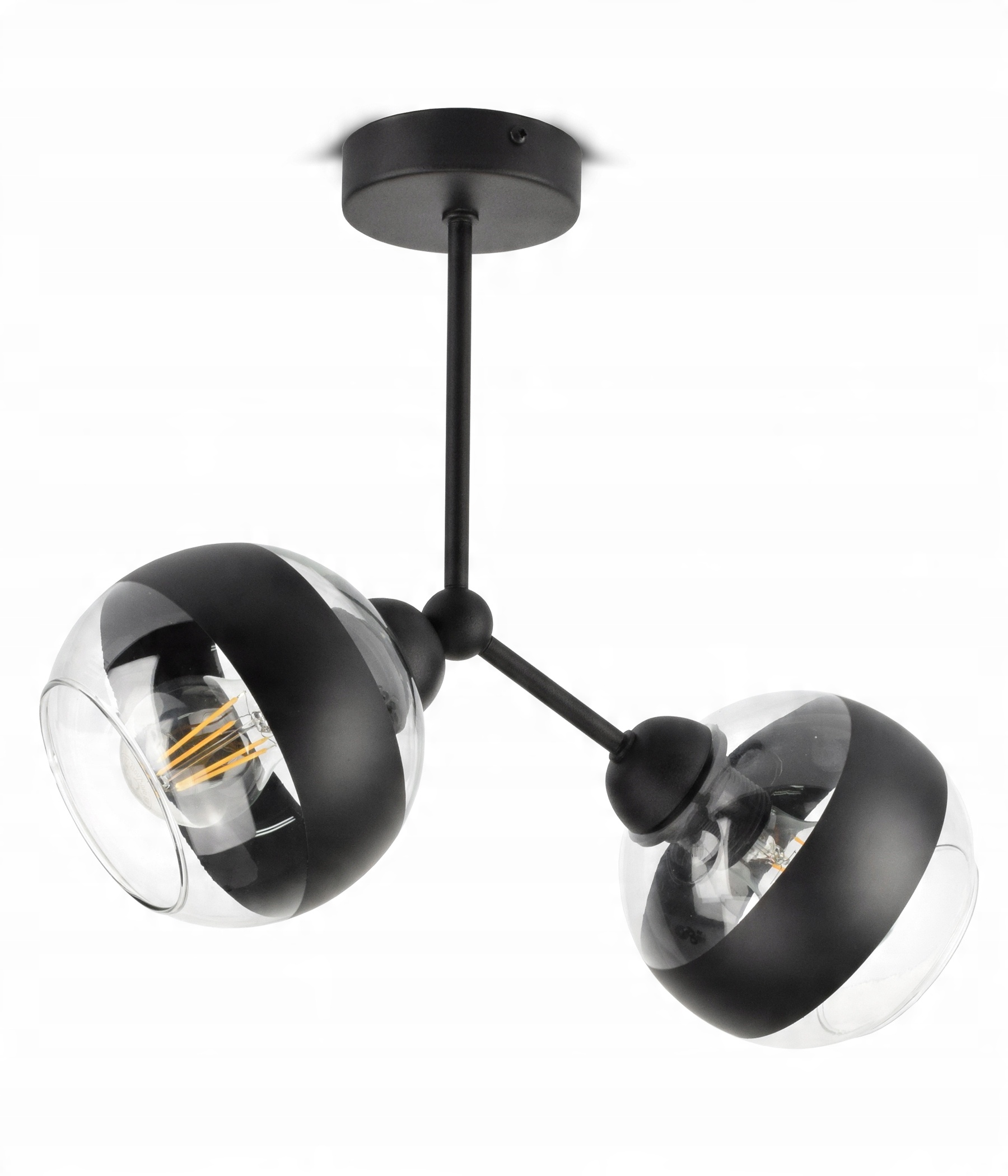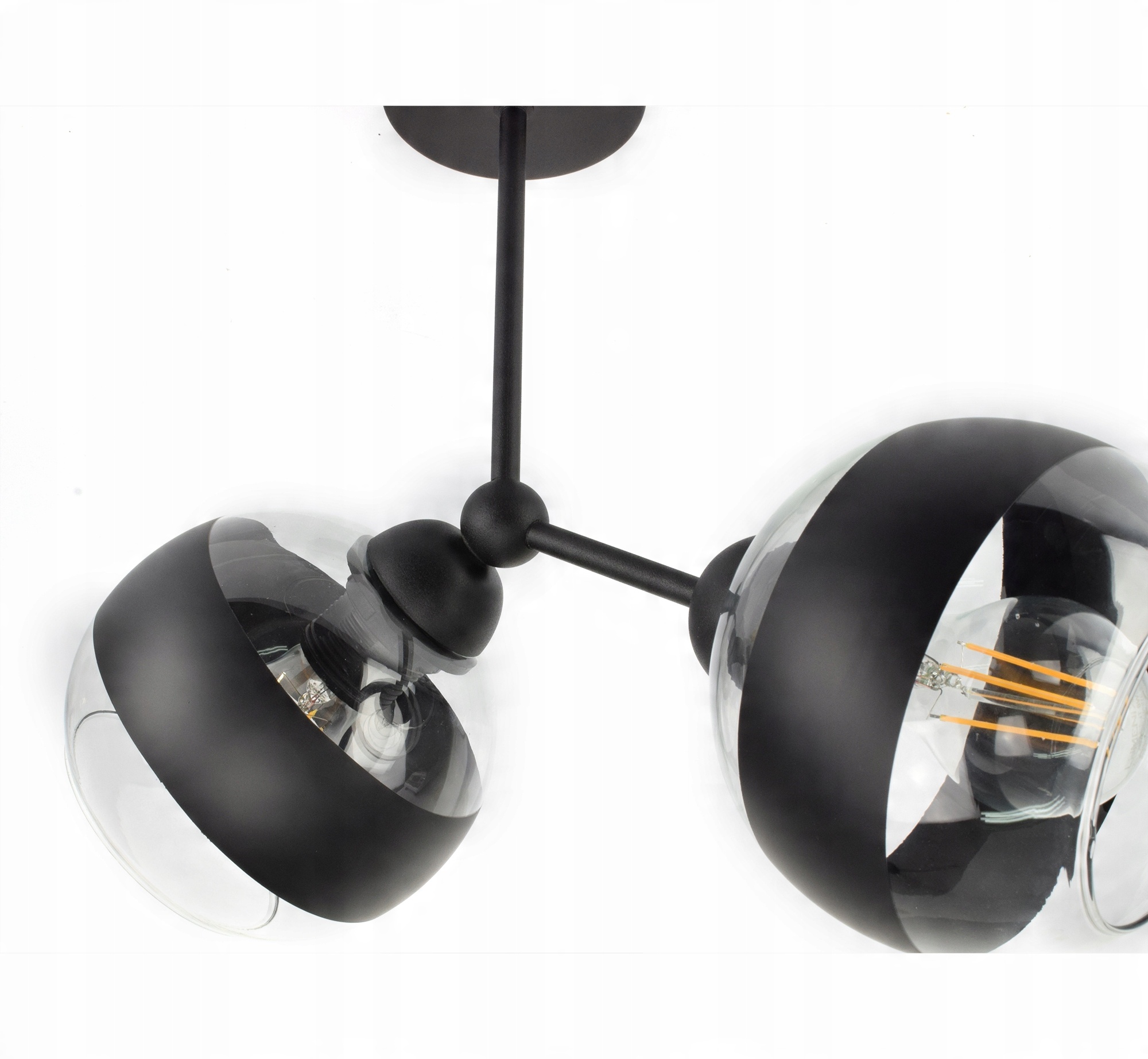 ✅ Lampa wyposażona w szklane klosze w kształcie kuli z Czarnym pasem w części centralnej.