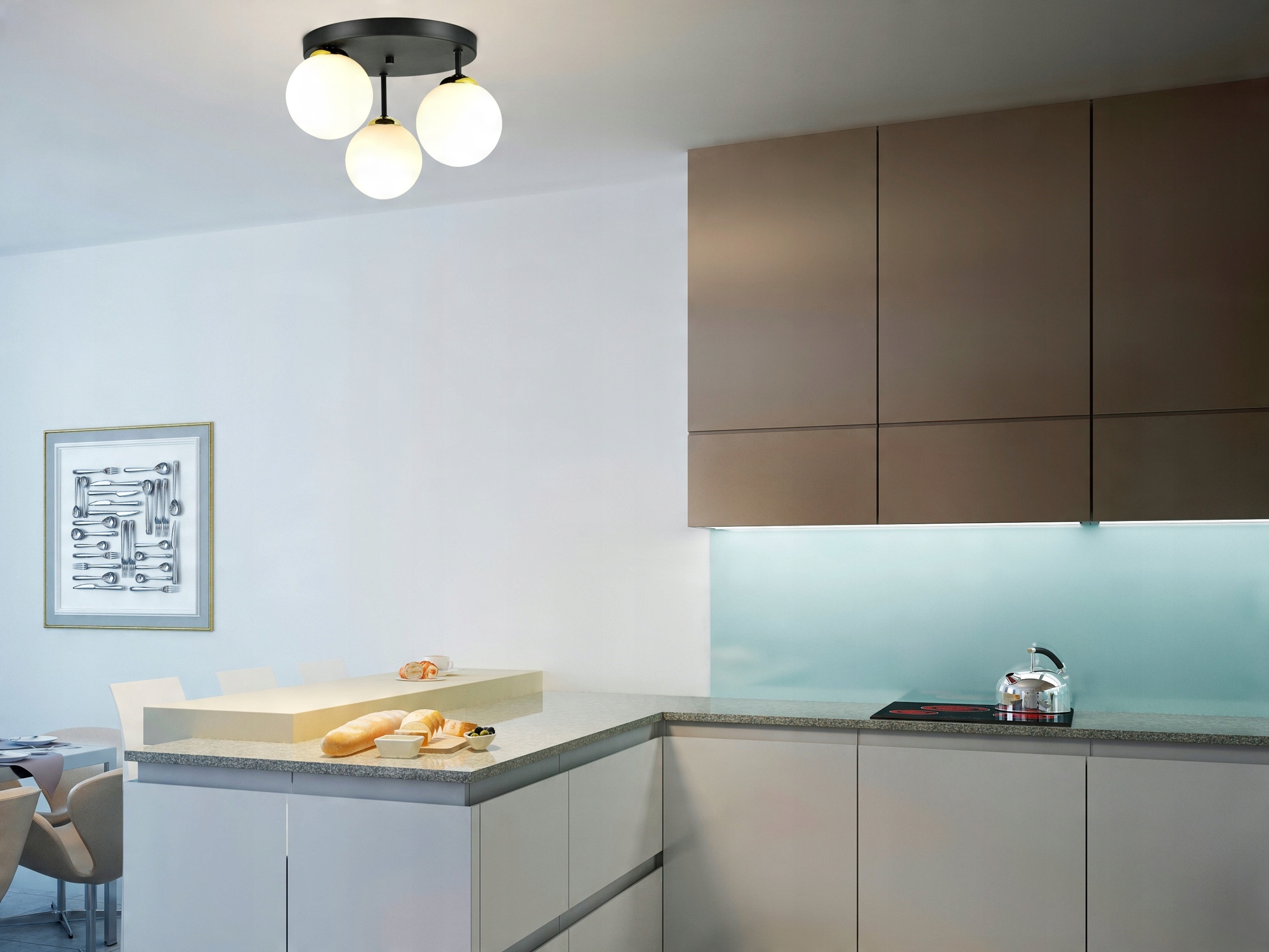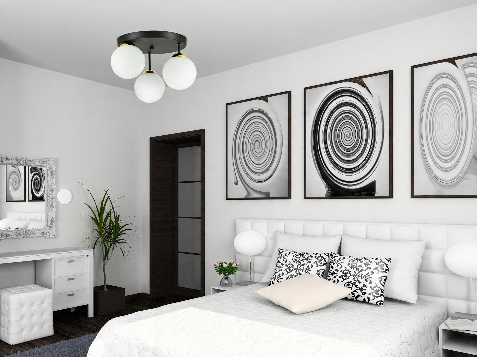 Zestaw nie zawiera żarówek ani kołków rozporowych (należy dobrać odpowiednie do rodzaju podłoża sufitu: cegła, płyta G-K...)
