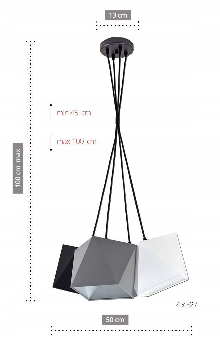 Abażury: 1 x Czarny, 1 x Szary, 1 x Biały, 1 x Czerwony