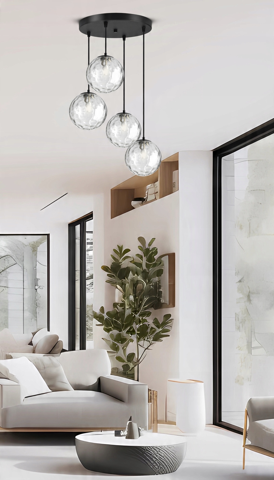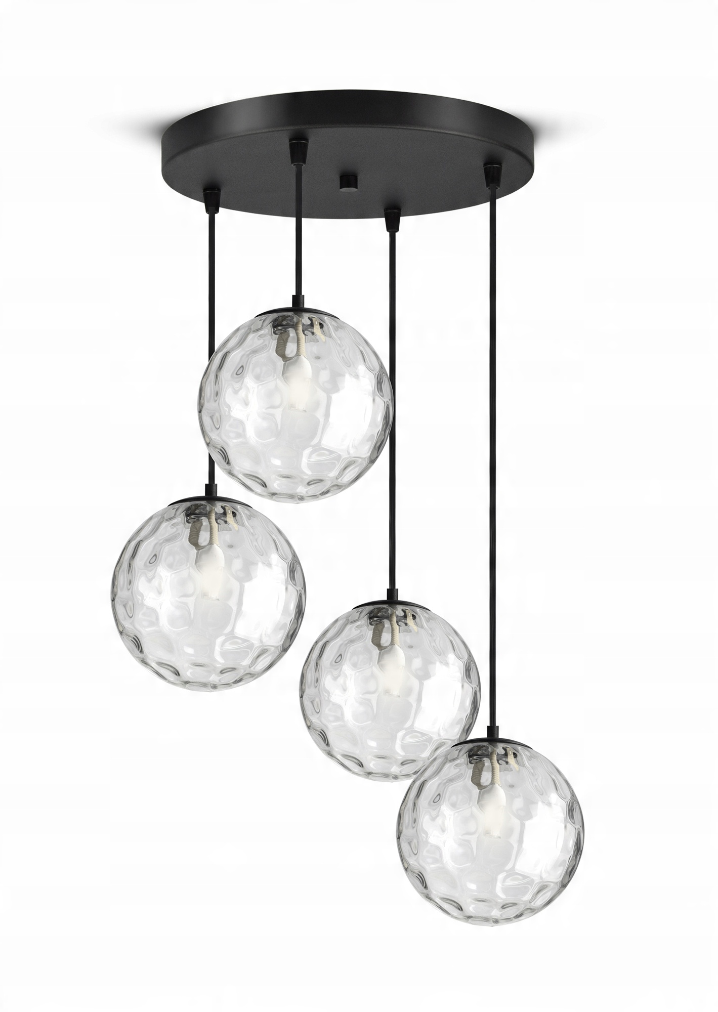 ✅ Lampa wyposażona w bardzo modne szklane klosze przypominające plaster miodu. Przeźroczyste szkło oddaje całą moc żarówek.