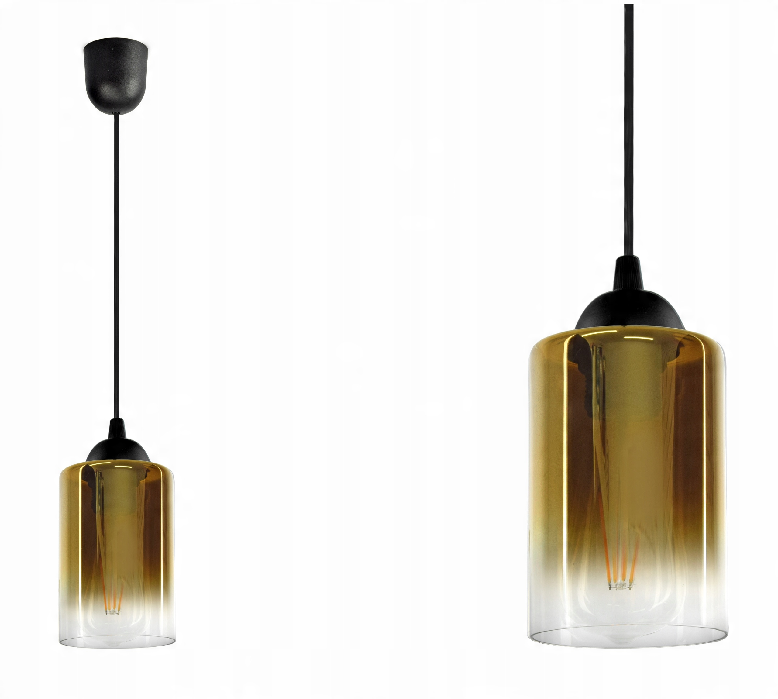 Lampa Wisząca Szklana Tuba Złota Transparent LED
