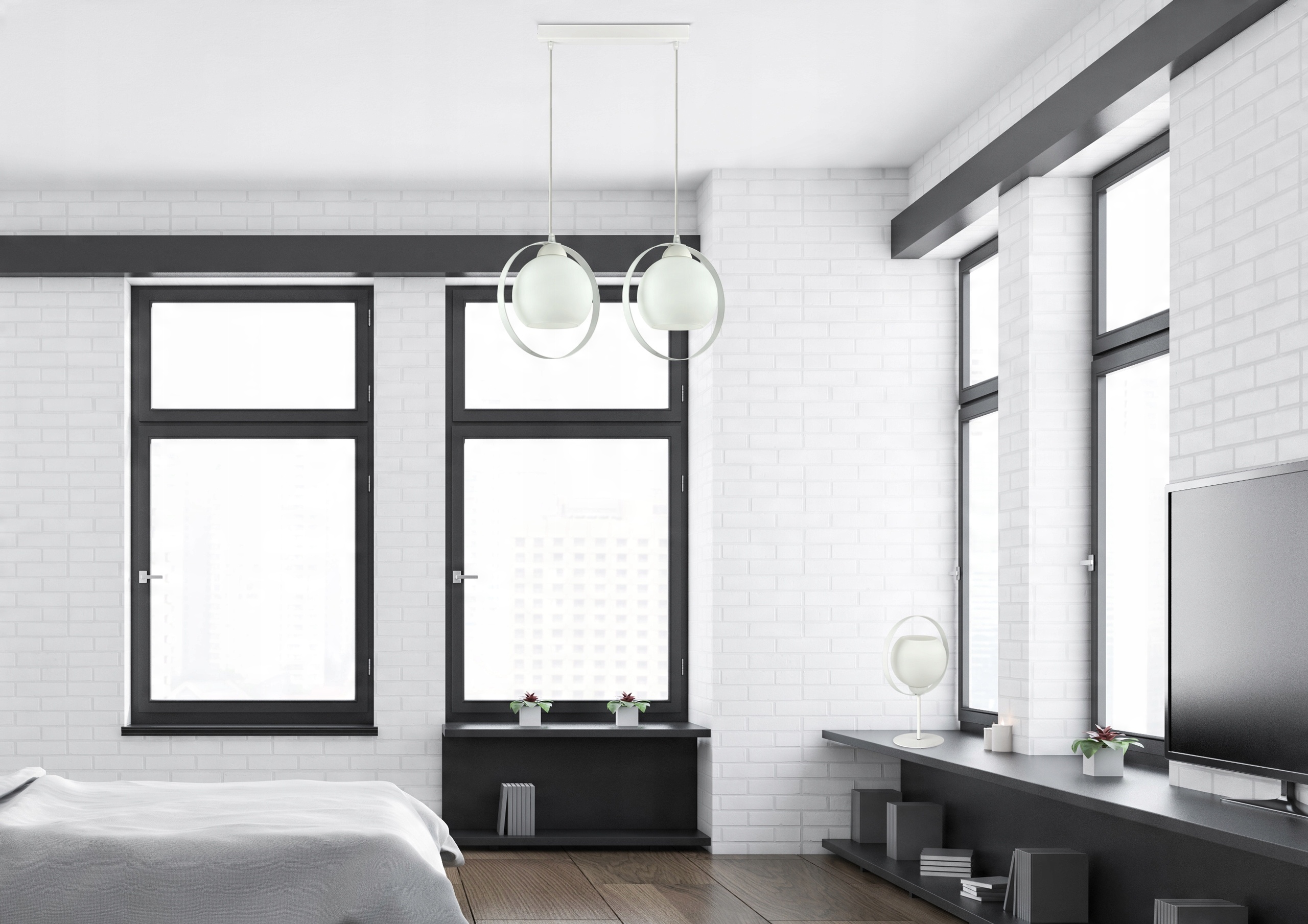 - Materiał kloszy: Metalowa obręcz + szkło w kolorze mlecznym