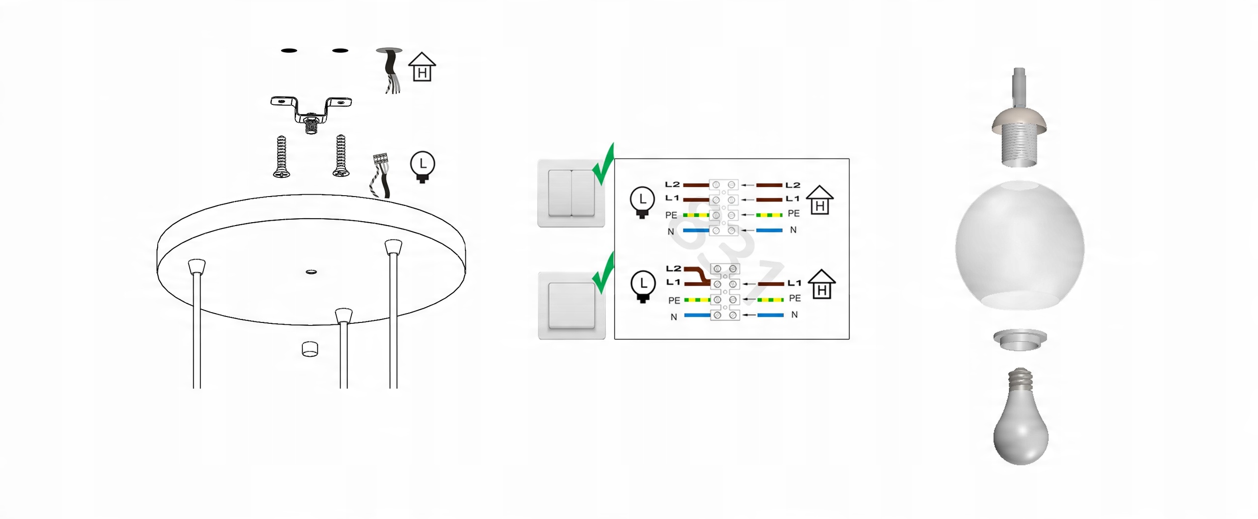 Zestaw nie zawiera żarówek oraz kołków rozporowych (należy dobrać odpowiednie do sufitu)