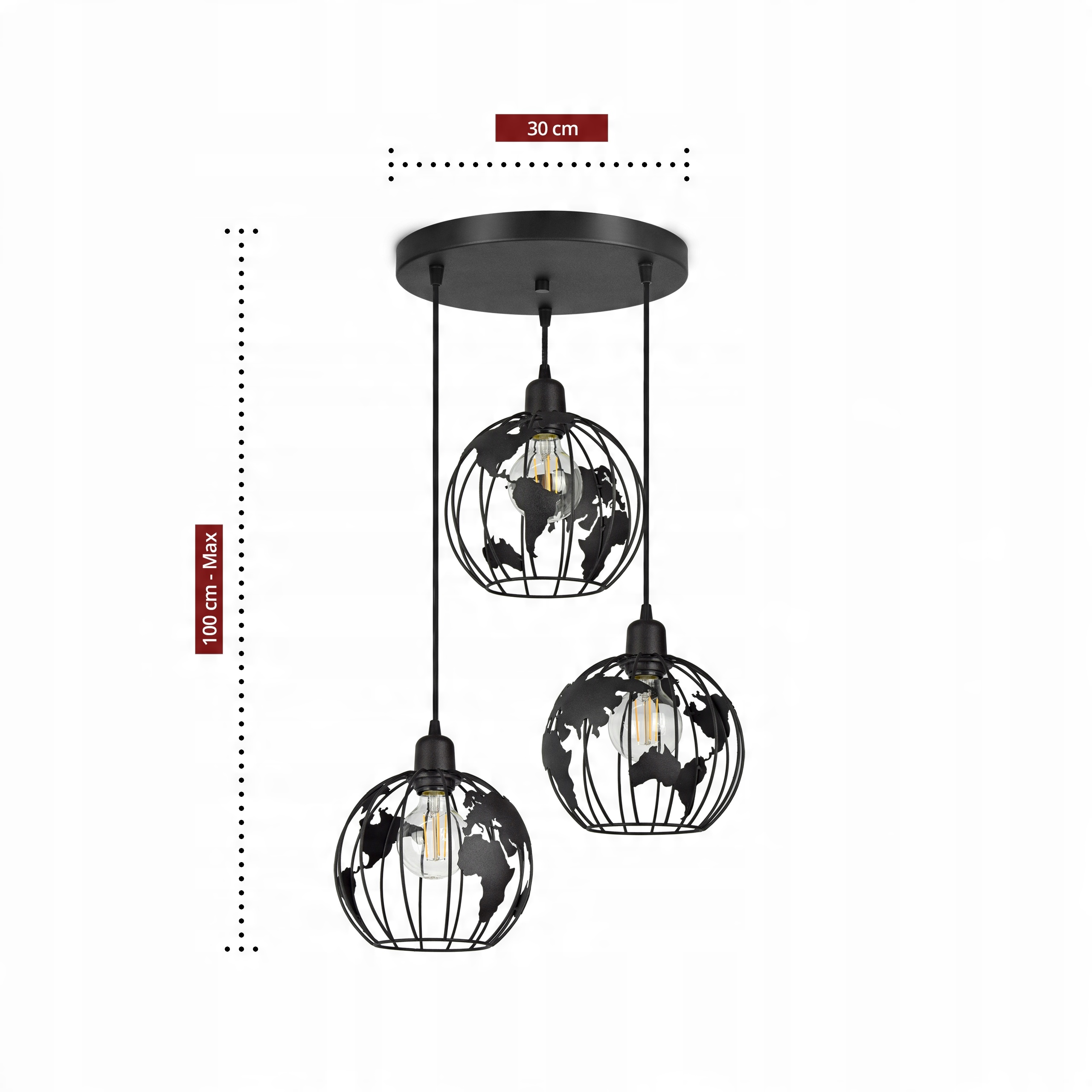 Lampa Wisząca Żyrandol Globus Czarna Biała Szara