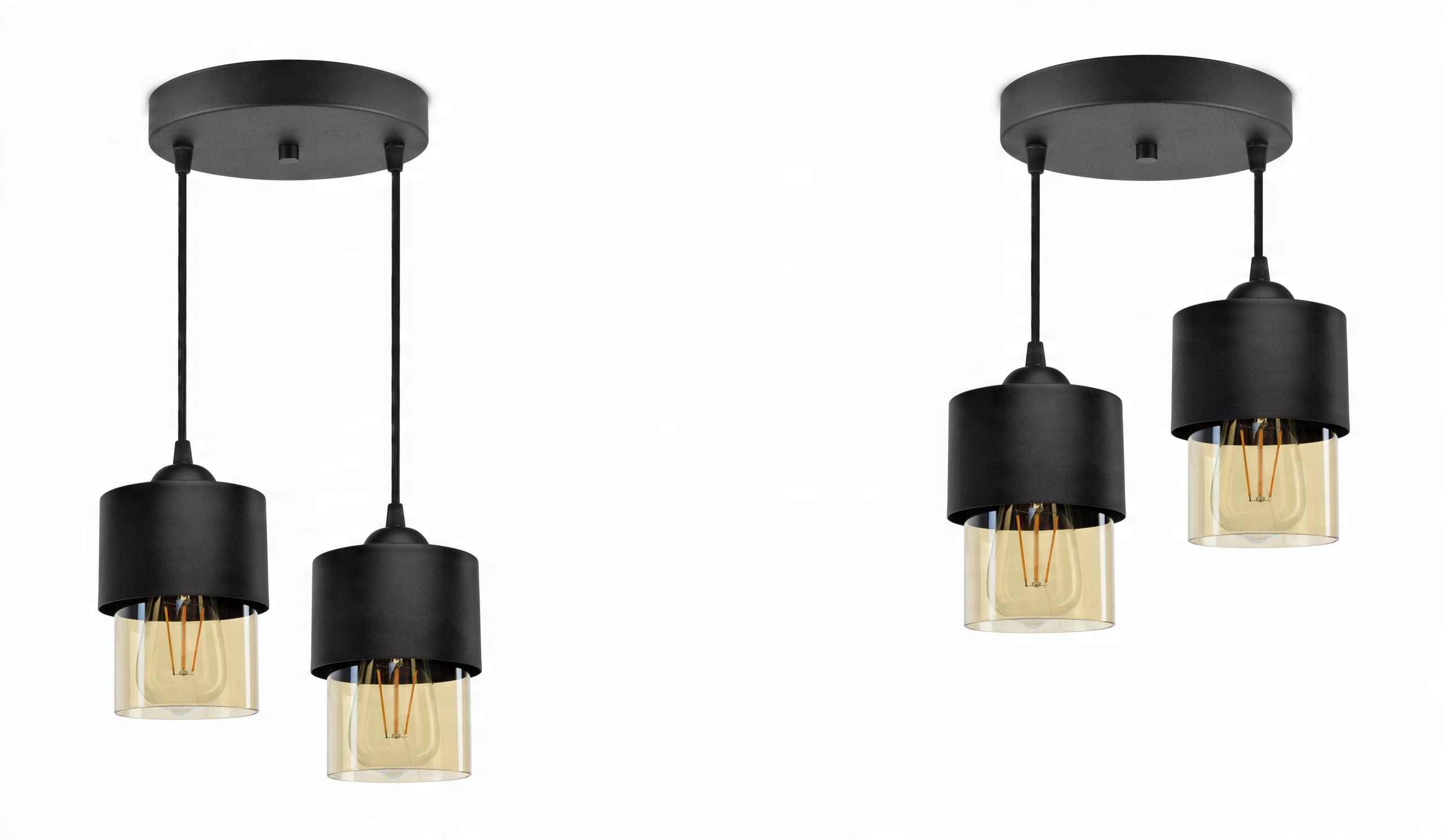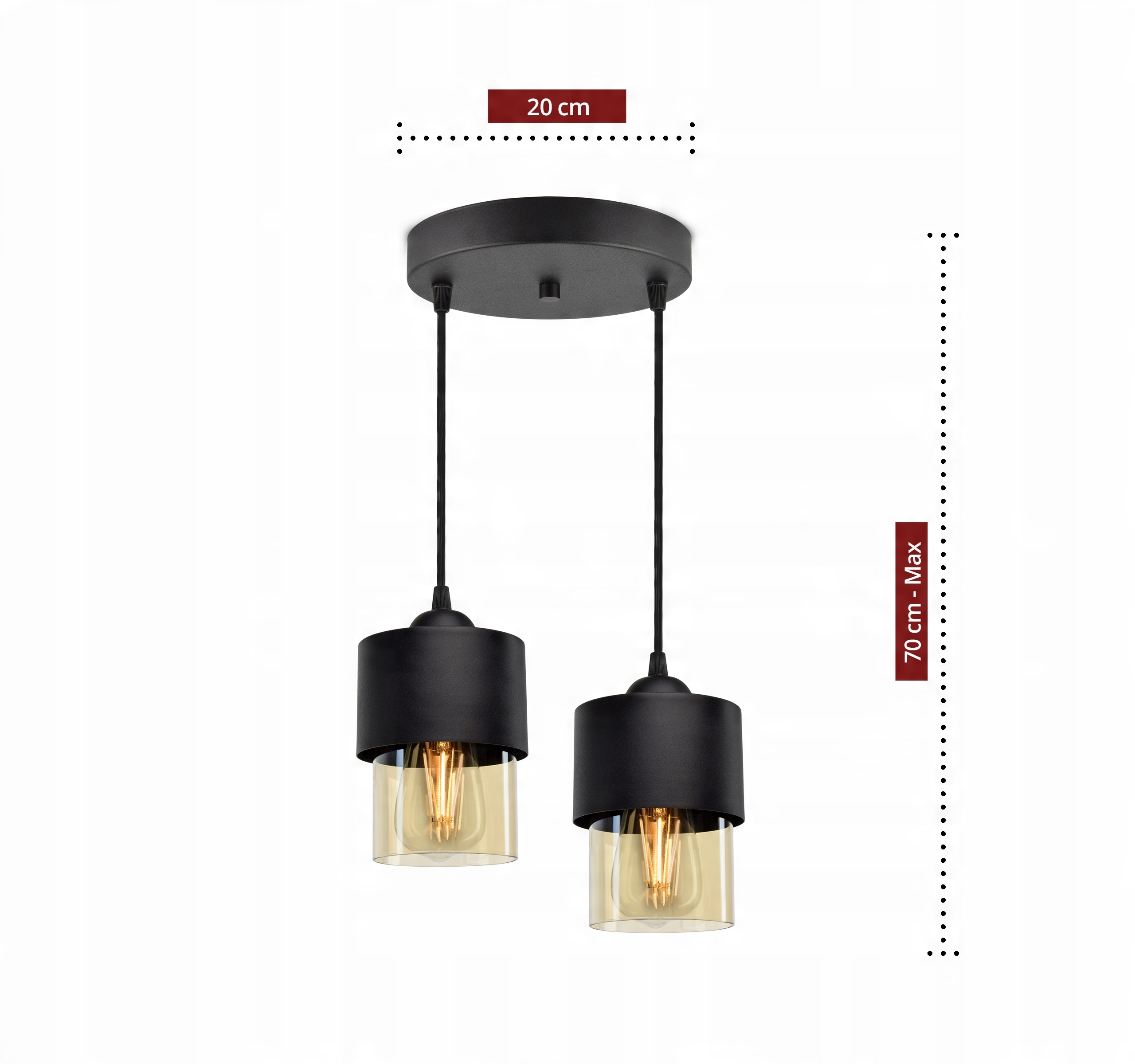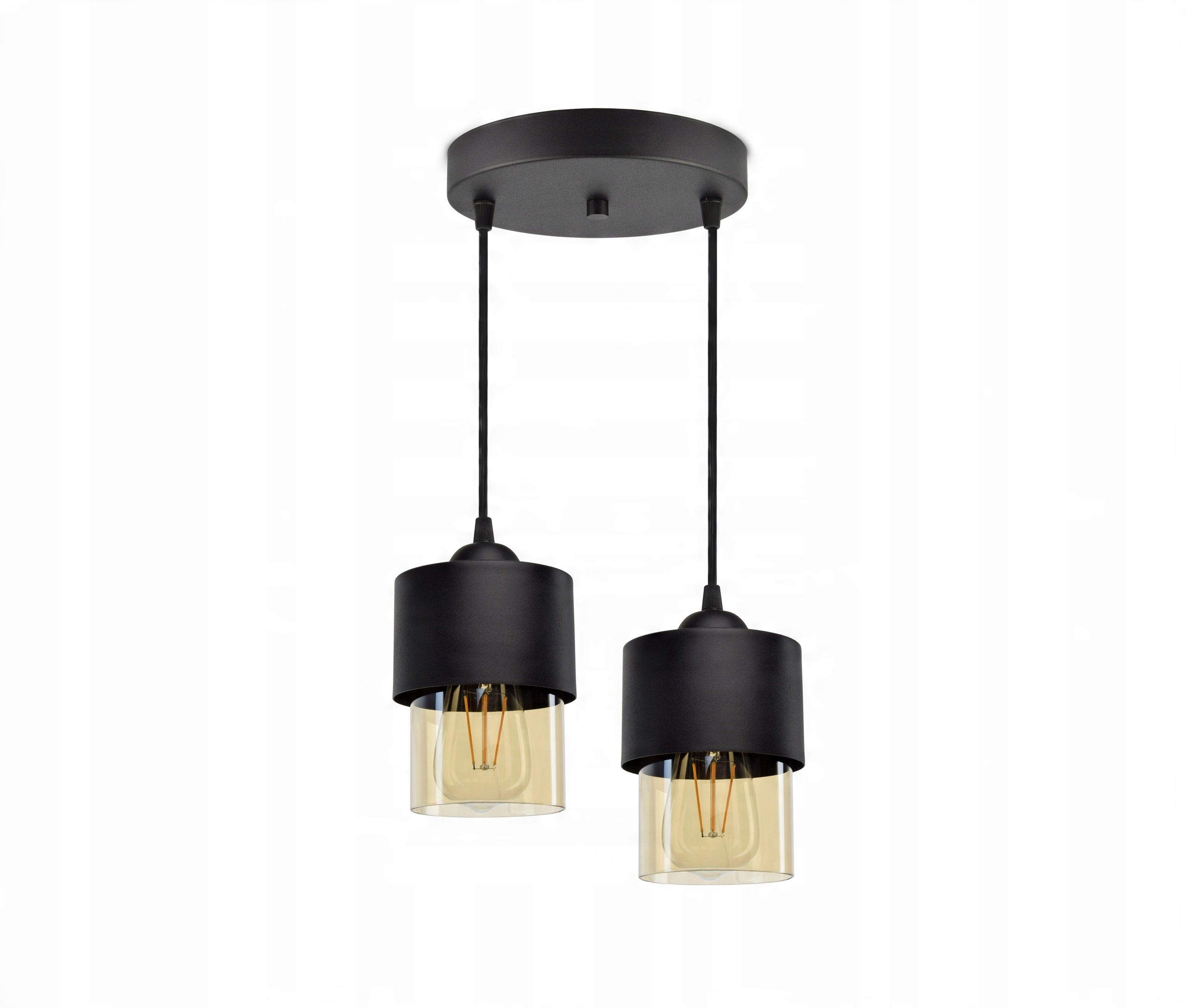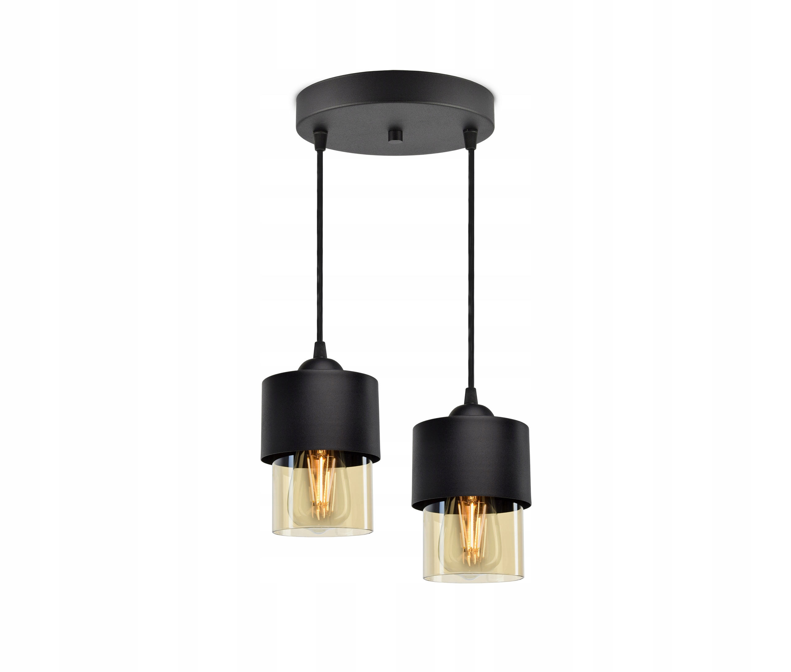 Lampa Wisząca Żyrandol Klosze Metal Szkło Miód LED