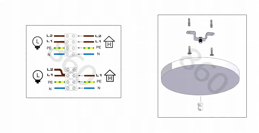 Zestaw nie zawiera żarówek ani kołków rozporowych (należy dobrać odpowiednie do sufitu)