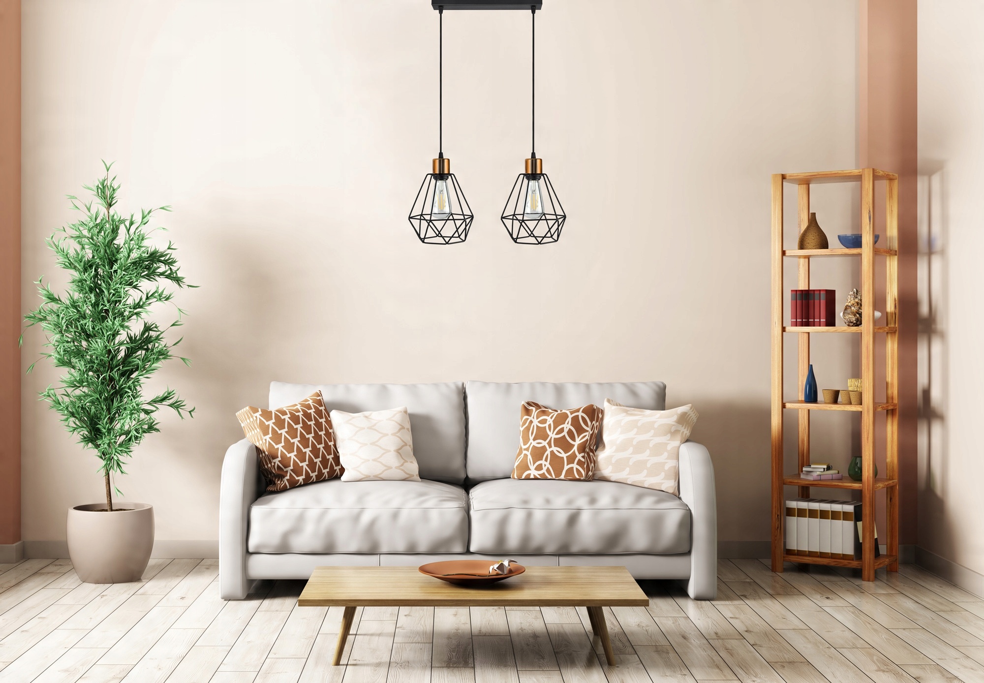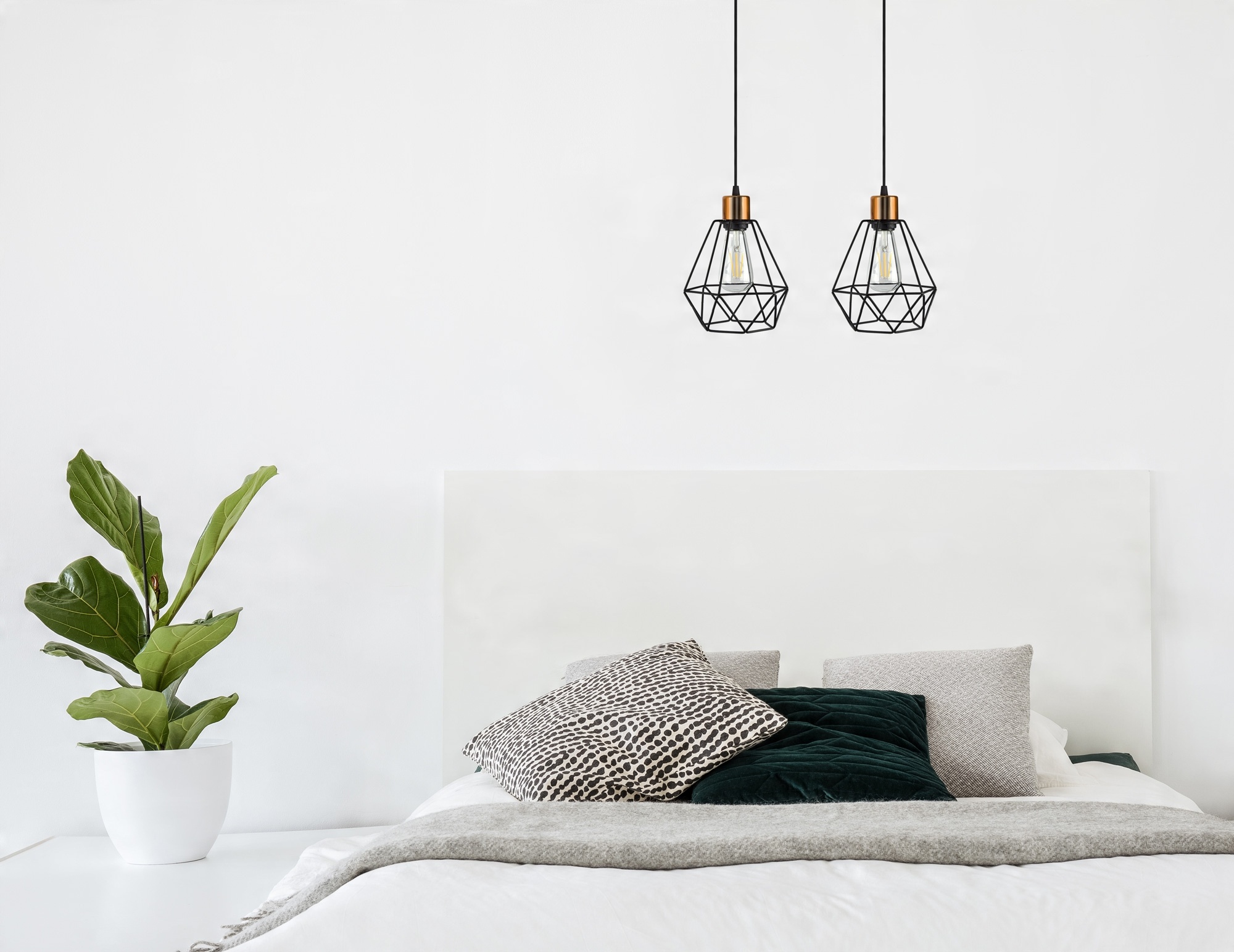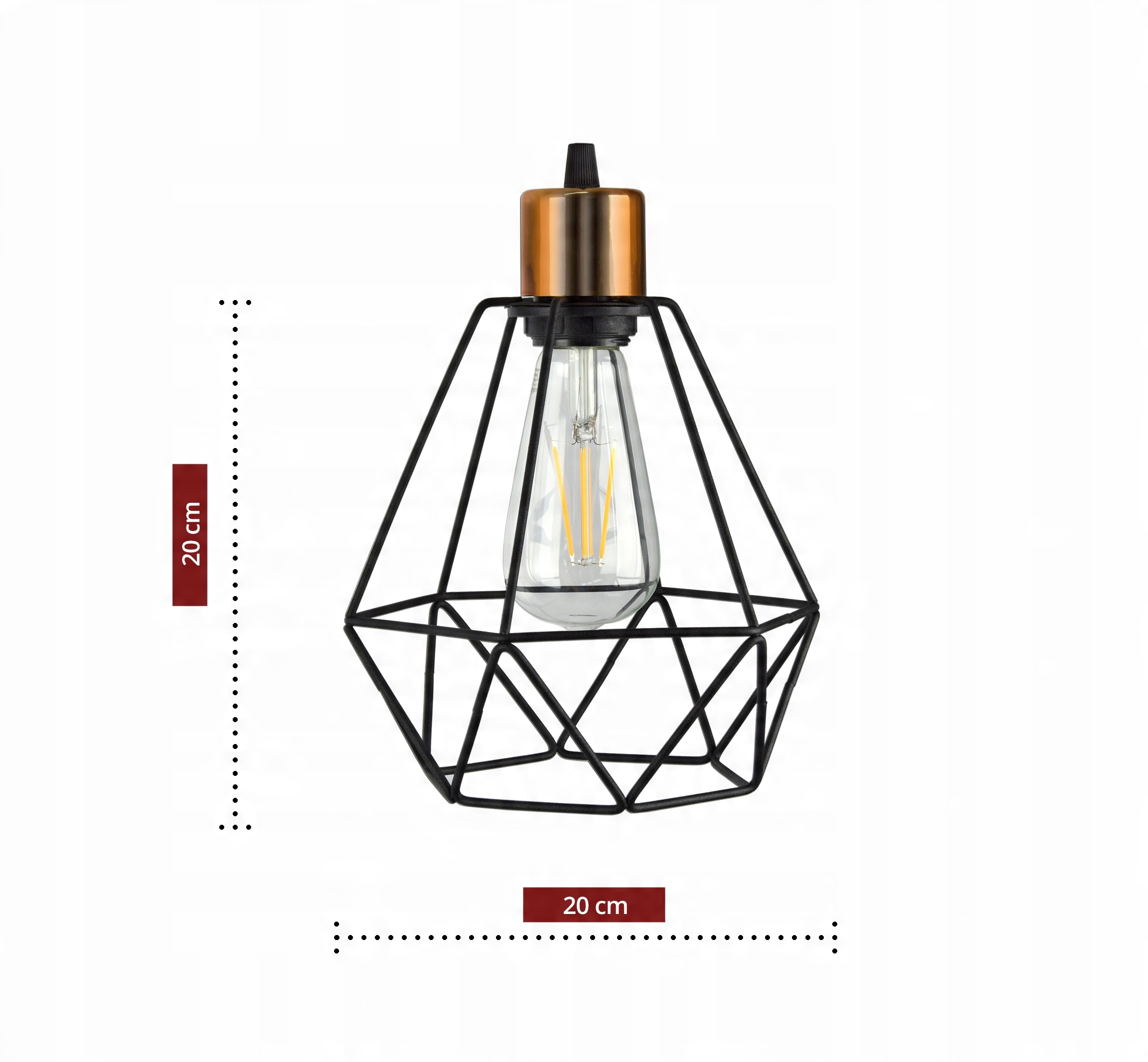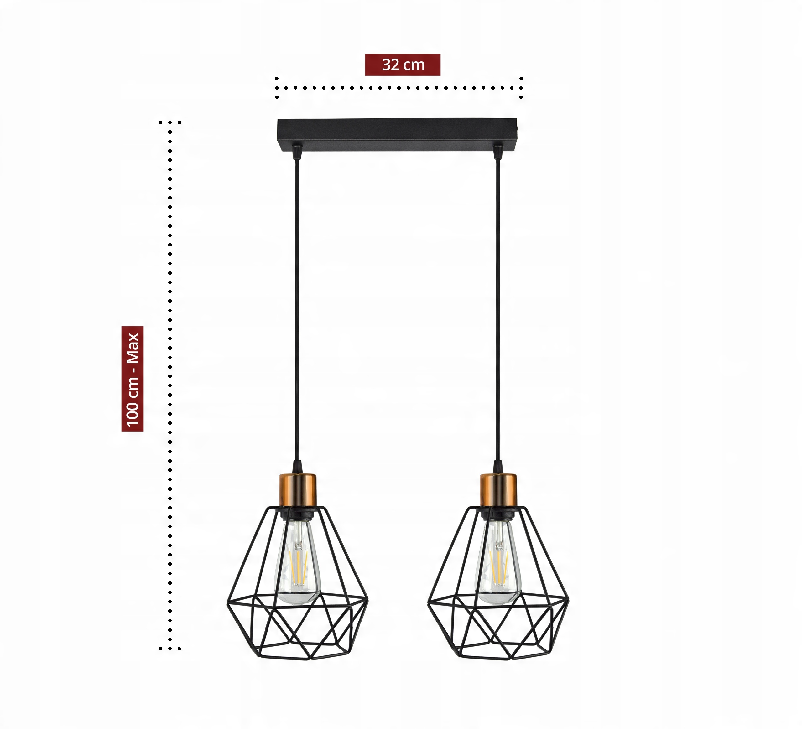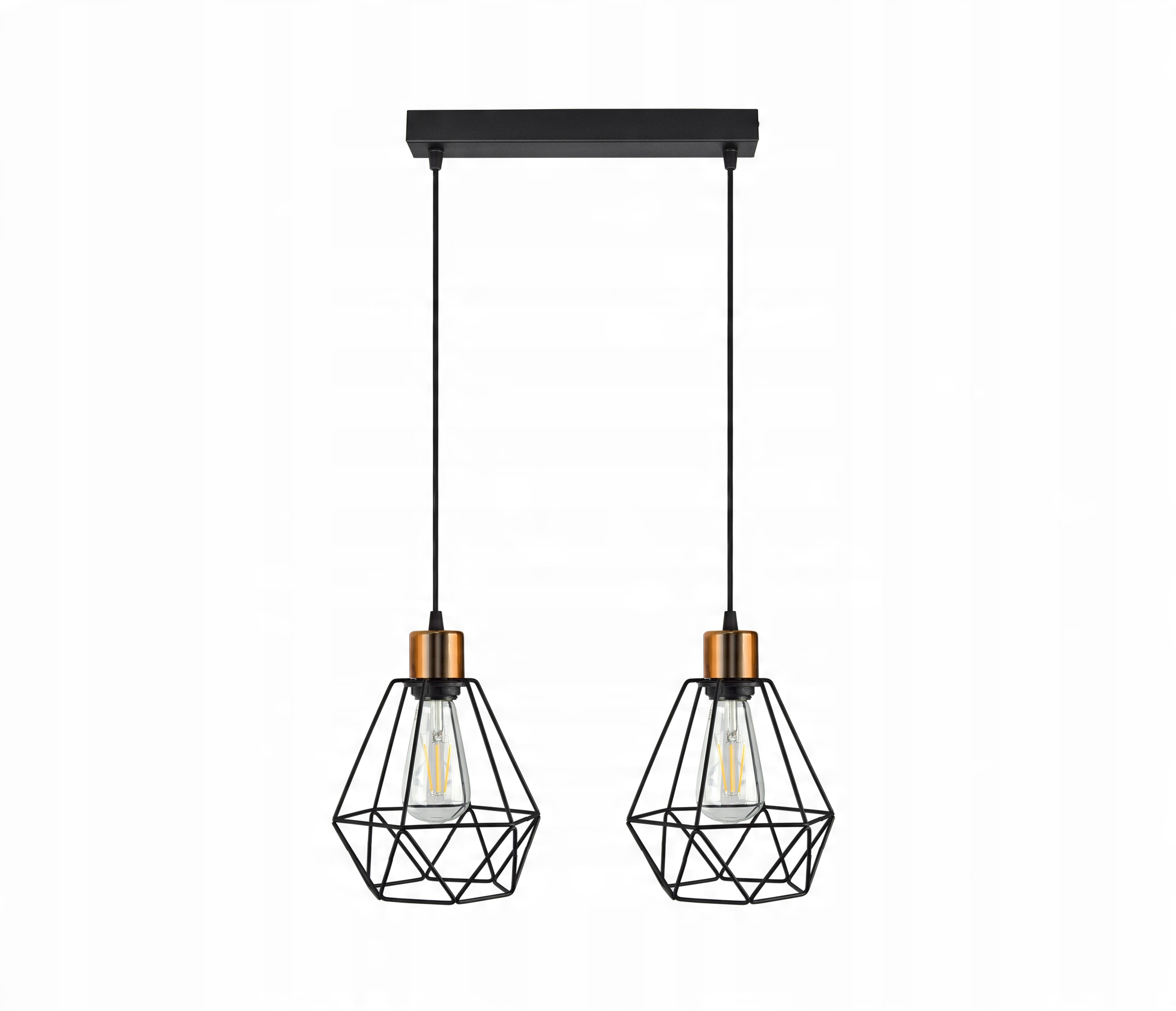 Designerska lampa wisząca wyposażona w Dwie druciane osłony DIAMENT - idealna do mniejszego pokoju, niedużej kuchni czy jadalni.