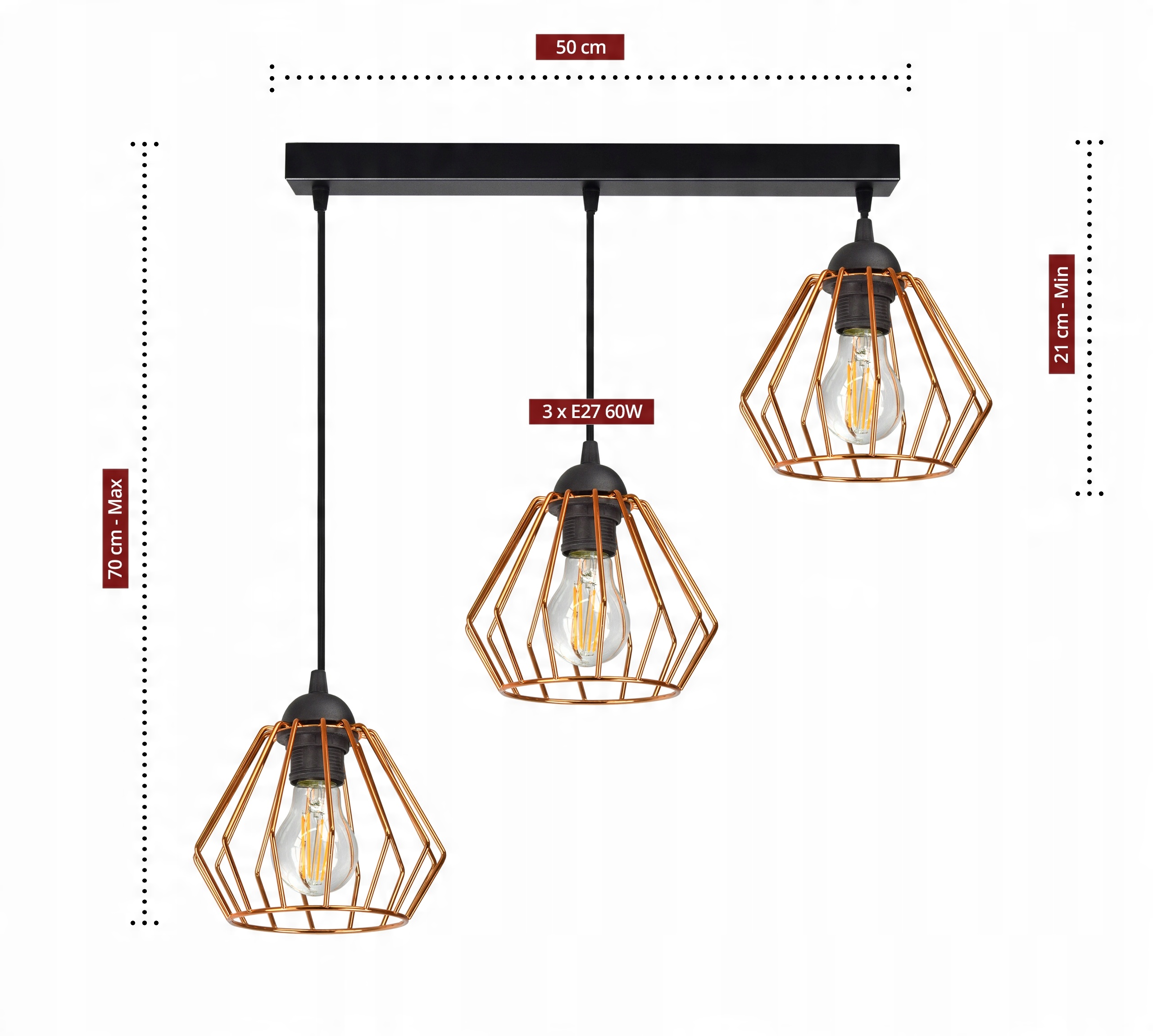 - Źródło światła: E-27 - zalecane LED lub świetlówki kompaktowe