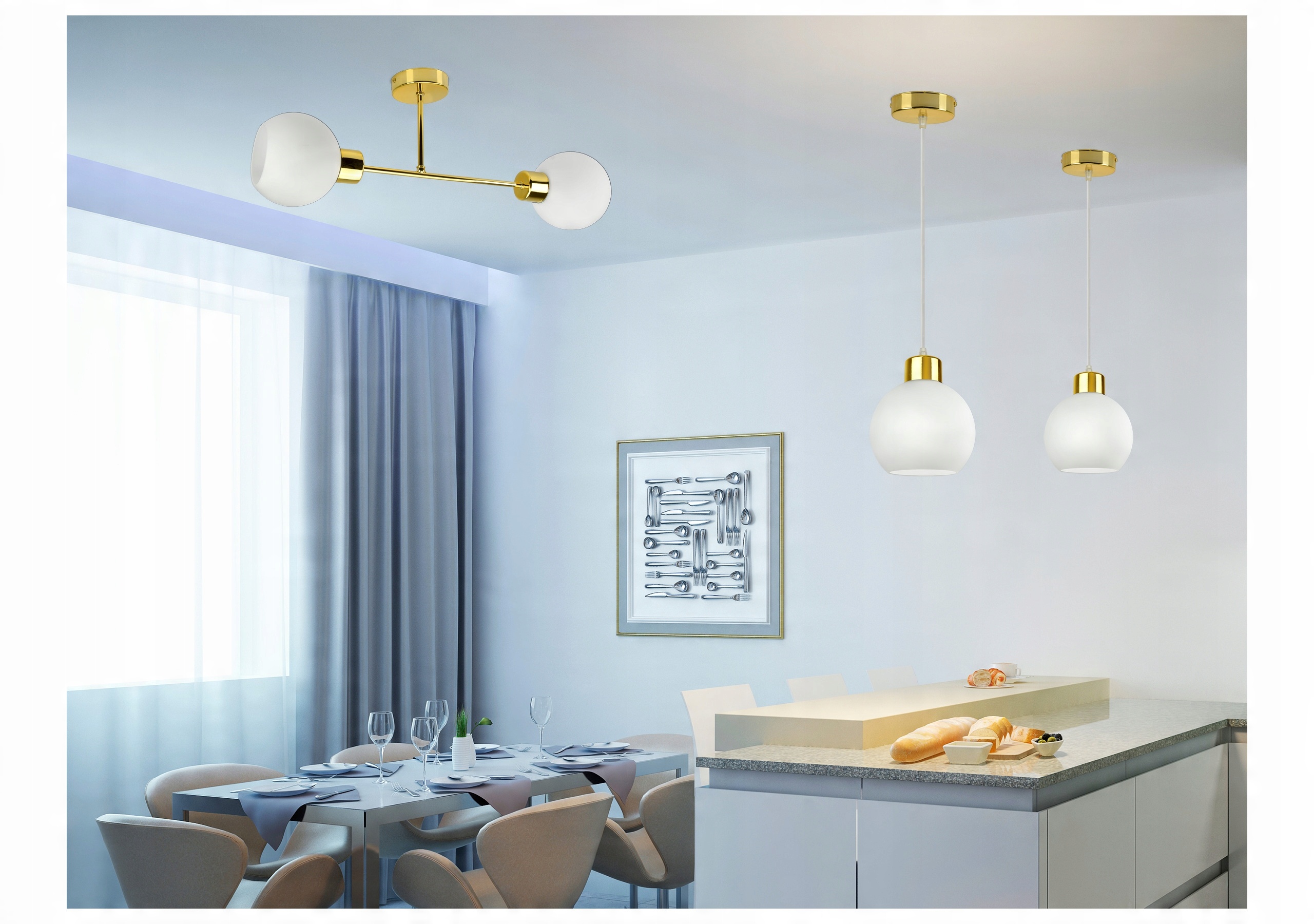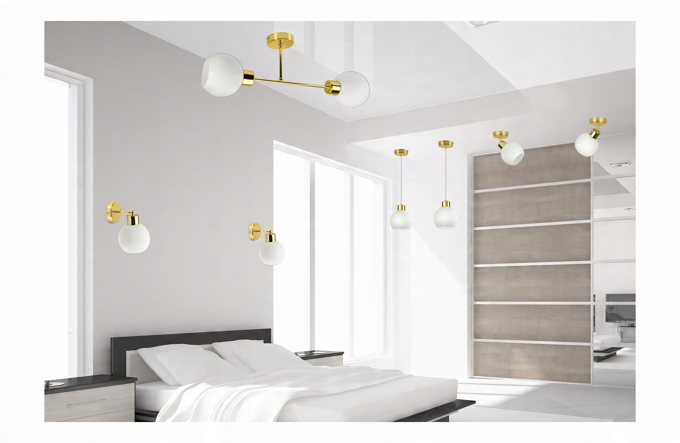Lampa Wisząca Żyrandol Plafon Złoty Kule Biały Mat