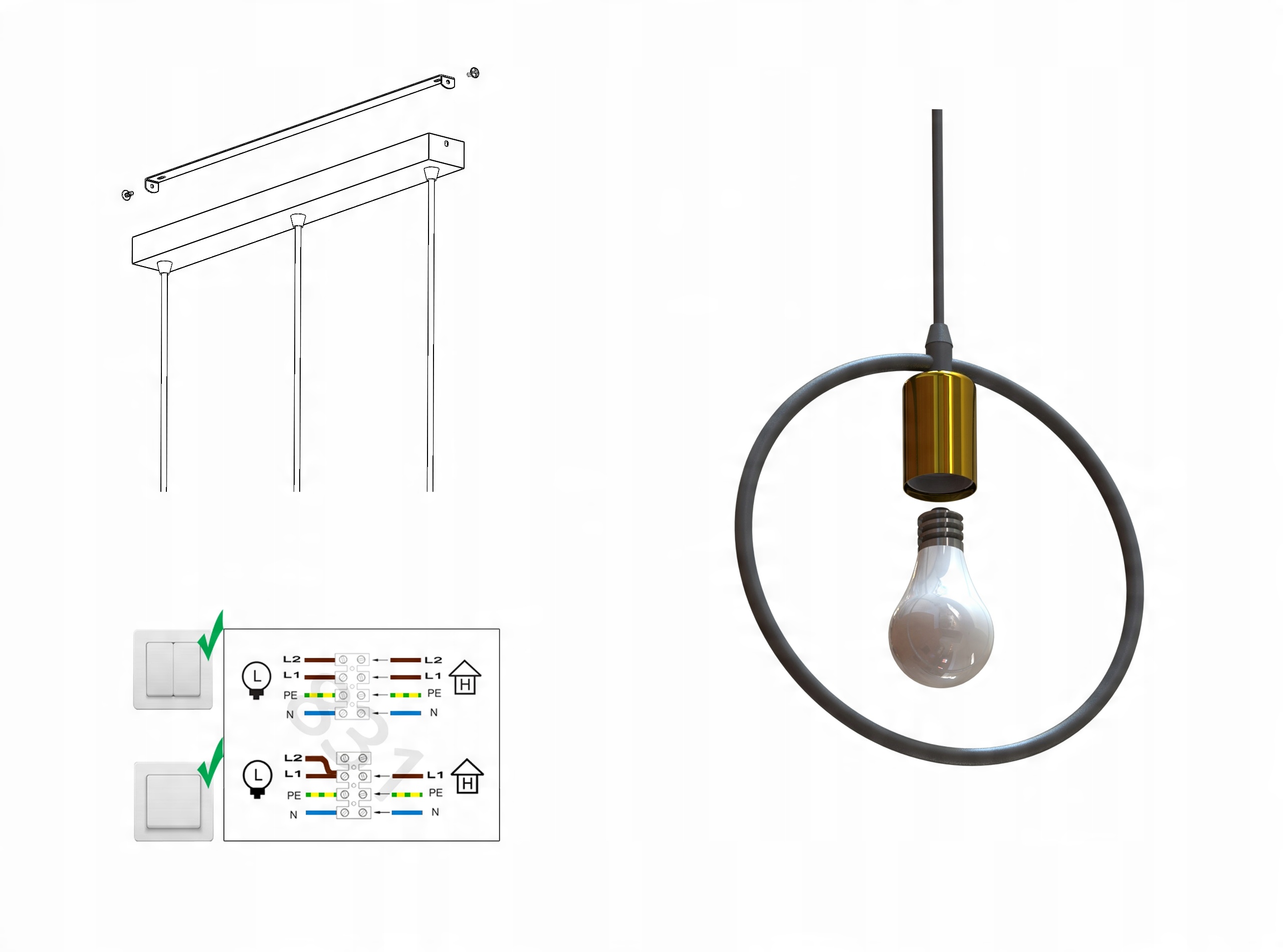 - Zestaw nie zawiera żarówek oraz kołków rozporowych do montażu