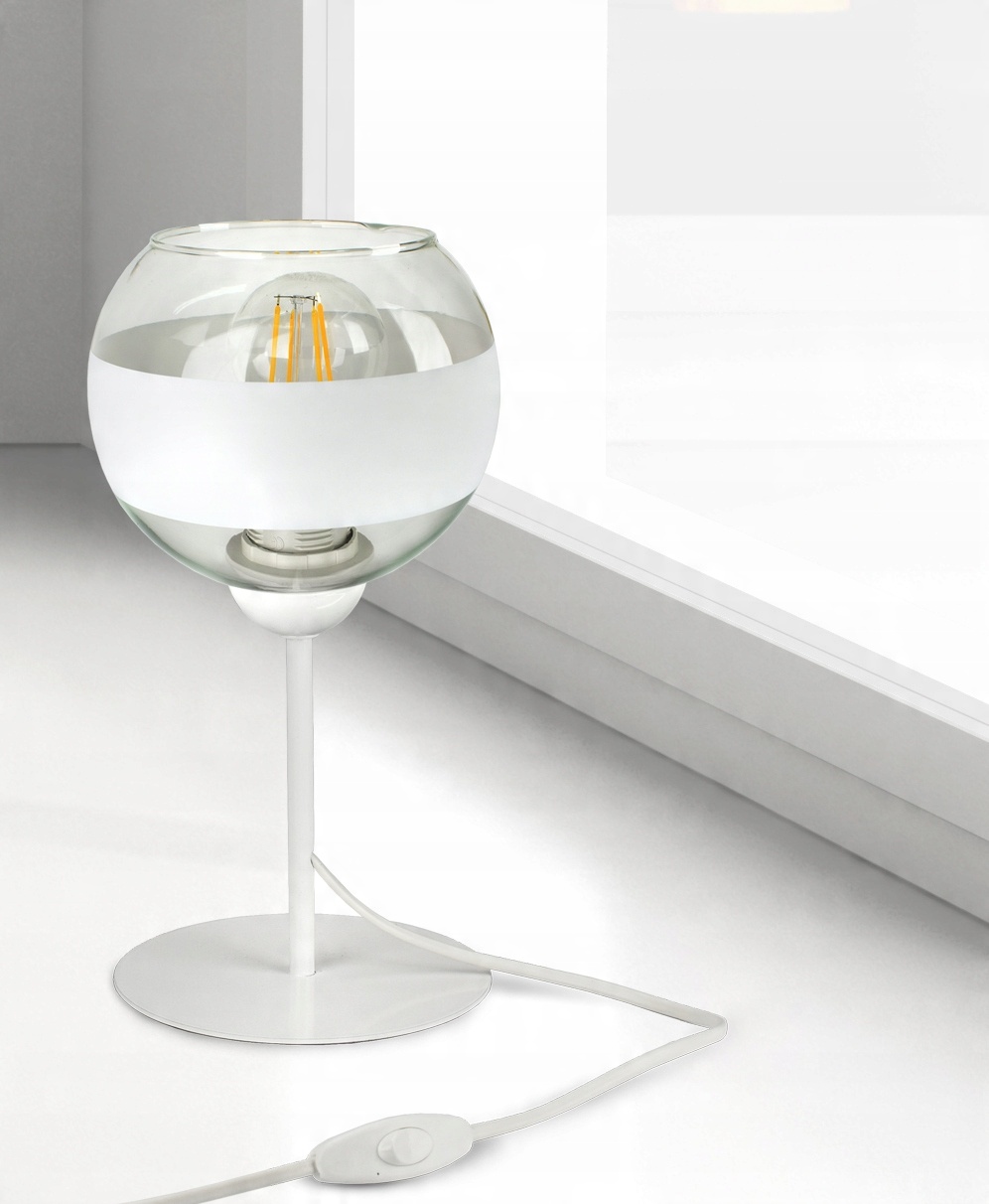 Lampka Nocna Stołowa Dekoracyjna Biała Szklana Kula White Belt L1 LED E27